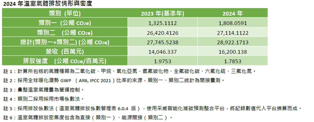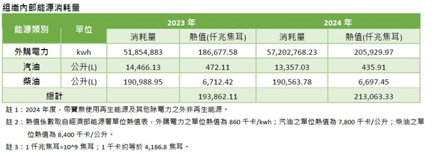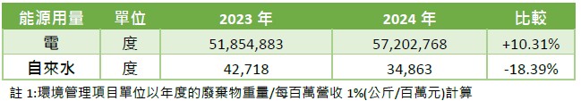 綜合檢視2024年未達成目標的主因,主要為產能增加,導致整體用電量上升。然而,值得注意的是,整體能源密集度呈現下降趨勢,顯示能源使用效率已有明顯改善。未來將以全方位資源有效分配與利用為核心策略,並規劃以「較前一年度碳排放量減少1%」作為年度目標,持續朝向資源最佳化與永續發展邁進。